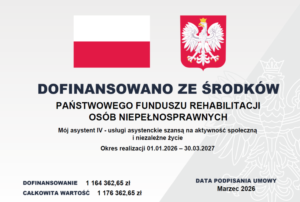 Projekt dofinansowany ze środków PFRON, w ramach konkursu 1/2025 „Możemy więcej”. Kwota dofinansowania 1.164.362,65 zł.